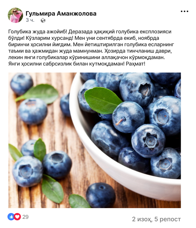 Голубика бум - сизнинг участкангизда сувли мевалар ўстиринг!