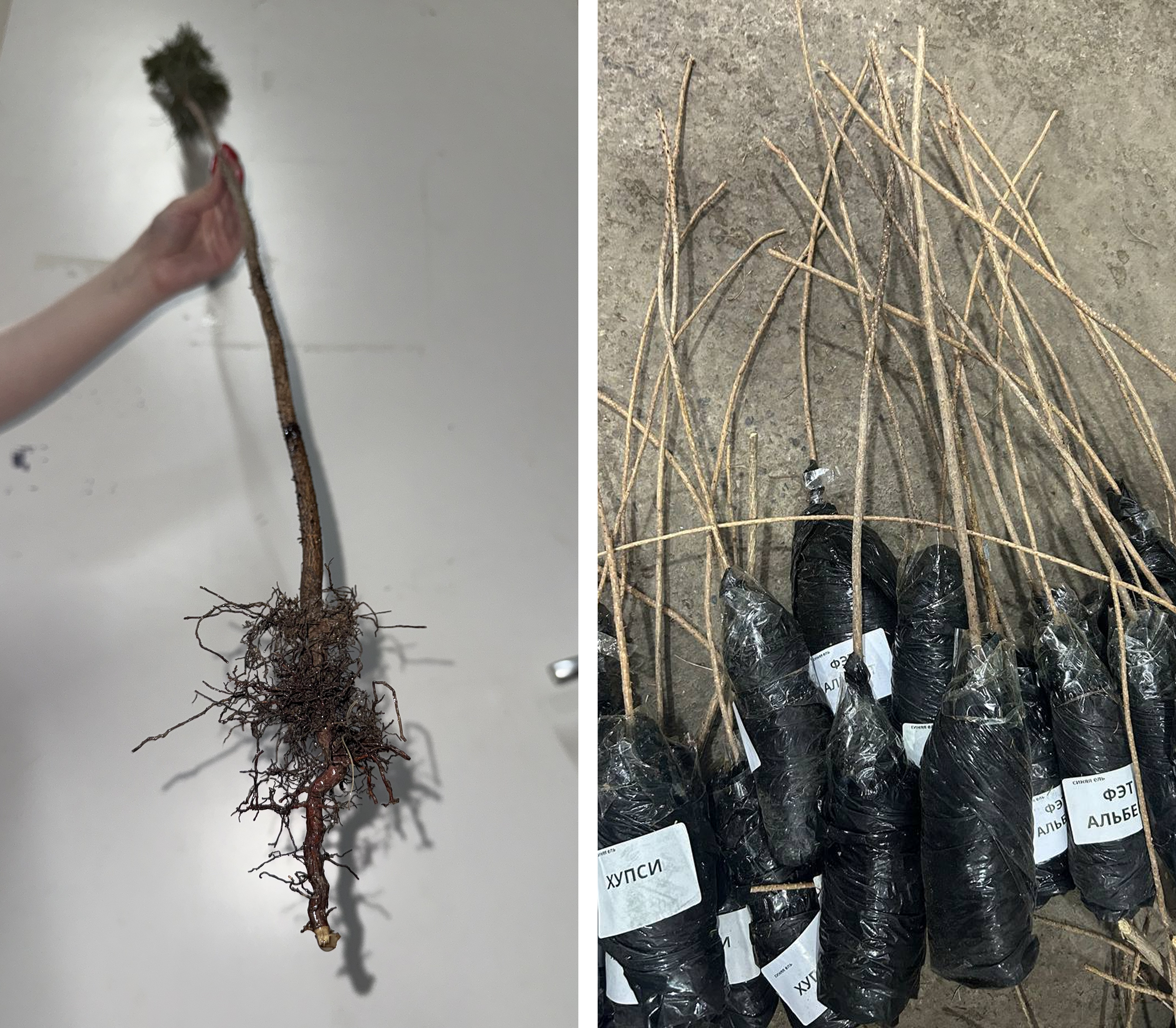 После всех процедур корневая система плотно заматывается в термовакуумную плёнку. Это сохраняет влагу, тепло и стерильность до самой посадки. На каждый саженец клеится этикетка с названием сорта и кратким описанием, чтобы вы не перепутали их на участке. Дополнительно каждый заказ упаковывается в бумагу и отправляется в транспортировочную коробку. Мы делаем всё, чтобы ваше растение прибыло в отличном состоянии — готовое к посадке и росту.